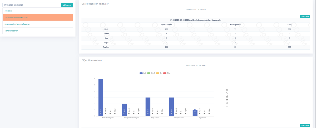 Raporlama ve Analizler: Yazılımımız, yöneticilere detaylı raporlar sunarak barınak veya klinik faaliyetlerini analiz etme olanağı sağlar. Bu, kaynakların daha etkili bir şekilde kullanılmasına imkan tanır.